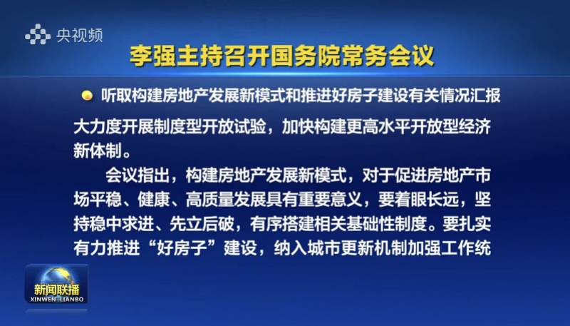 南都讯记者王玮发自北京更大力度促进房地产市场止跌回稳的政策已在路上。据新华社消息,国务院总理李强6月13日主持召开国务院常务会议,部署中国(上海)自由贸易试验区试点措施复制推广工作,听取构建房地产发展新模式和推进好房子建设有关情况汇报,审议通过《关于进一步完善信用修复制度的实施方案》,研究优化药品和耗材集采有关举措。