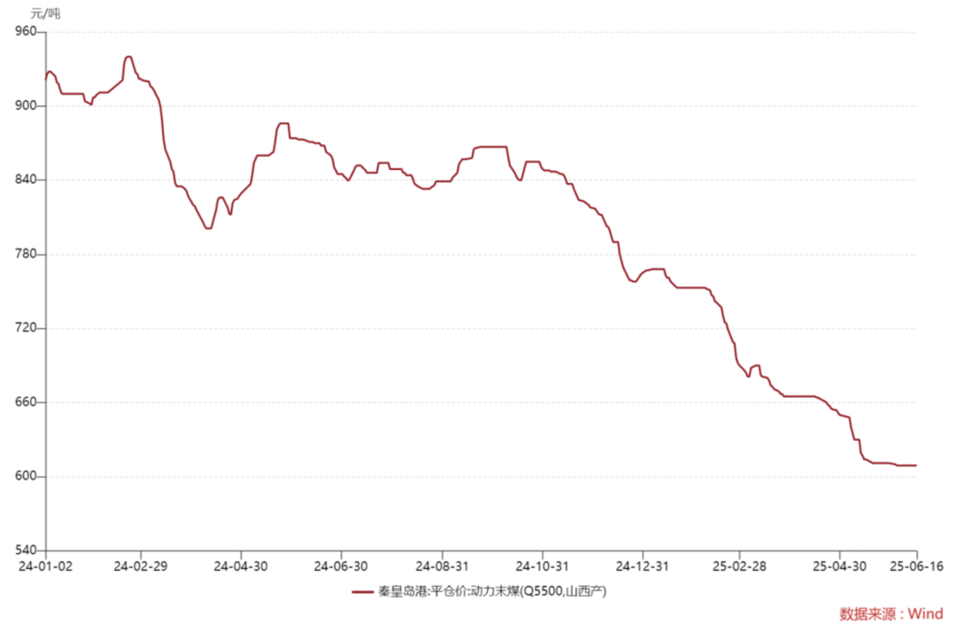 从价格端来看,在供需关系逐步改善以及迎峰度夏的催化下,国内煤价呈现企稳的态势,6月16日秦皇岛港5500大卡动力煤平仓价609元/吨,环比上周持平,较6月初下跌1元/吨。